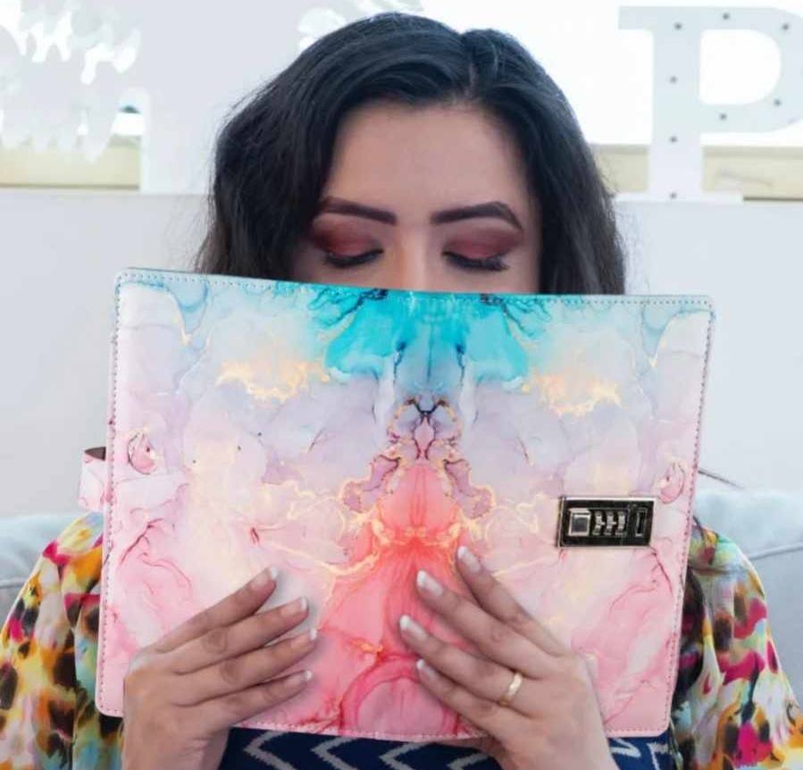 Vsaka knjiga je oblikovana z mislijo na vaše osebne potrebe in želje. Njena ključavnica s kodo vam omogoča, da svoje misli varno shranite in hkrati ohranite zasebnost. Velikost 23cm x 16cm je popolna za vsakdanjo uporabo, hkrati pa dovolj prostorna, da sprejme vaše najgloblje misli in najlepše spomine.