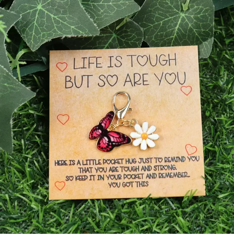 Obesek metulja "Življenje je težko, a ti si močnejši"❤️s sporočilom