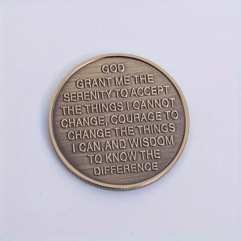 Na zadnji strani kovanca je izpisana molitev za moč in modrost, ki vas navdihuje, da sprejmete stvari, ki jih ne morete spremeniti, pogumno spremenite tiste, ki jih lahko, in modro prepoznate razliko. Ta misel je večni opomnik, da v življenju najdemo ravnovesje, če zaupamo svoji intuiciji in notranji moči.