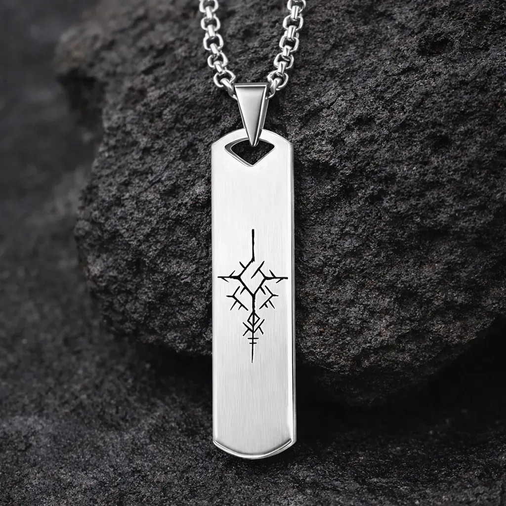 Obesek je izdelan iz kakovostnega nerjavečega jekla, ki je znano po svoji izjemni trpežnosti in odpornosti proti koroziji. Material ohranja svoj sijaj in videz tudi pri vsakodnevnem nošenju ter zagotavlja dolgo življenjsko dobo nakita. Brušena površina daje obesku eleganten, sodoben videz, medtem ko natančna gravura poudarja simboliko bindrune.