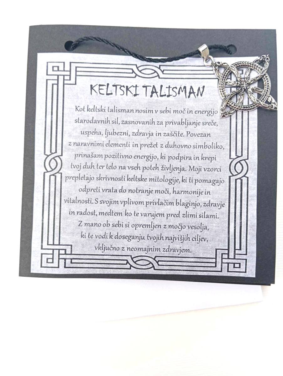 Vsaka ogrlica z univerzalnimi keltskimi simboli je skrbno zapakirana v elegantno vizitko s kuverto, kar jo naredi popolno za darilo.