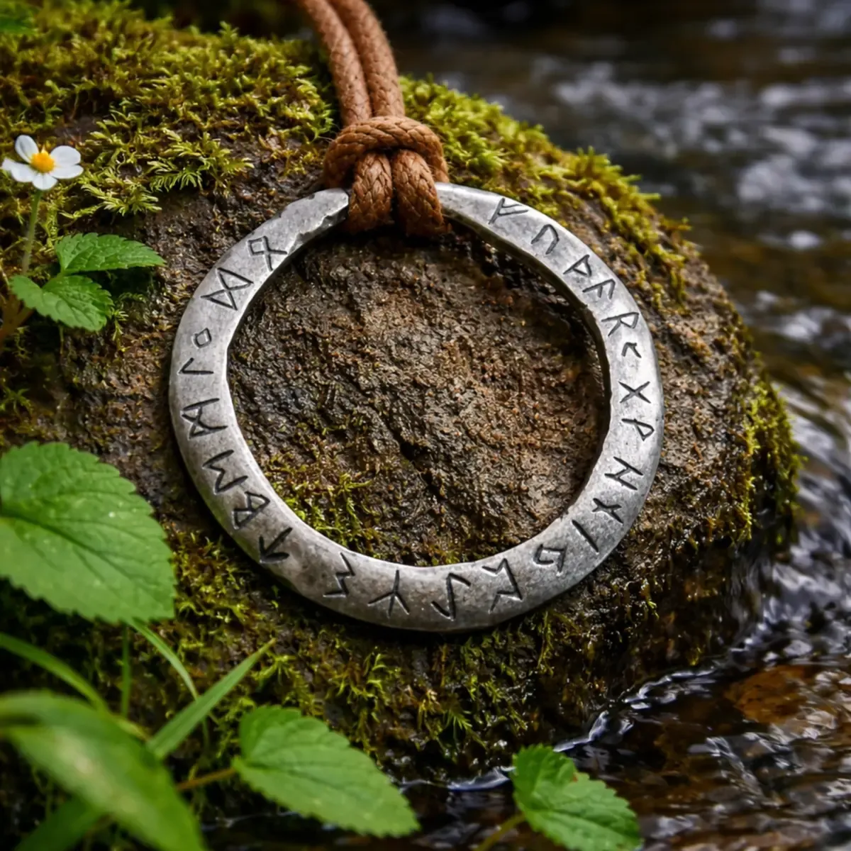 Ta amulet v obliki kroga simbolizira večnost, celovitost in neskončen tok energije. Krog je eden najstarejših simbolov v človeški zgodovini in predstavlja harmonijo med človekom, naravo in vesoljem. Runeski znaki, ki obkrožajo amulet, ustvarjajo občutek skrivnostnosti in starodavne modrosti, kot bi nosili delček nordijske mitologije vedno s seboj.