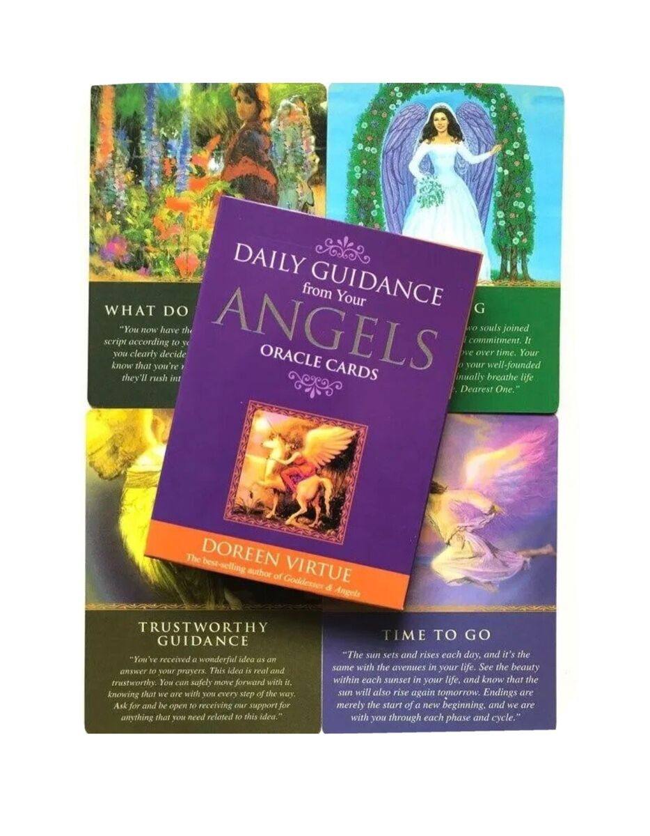 Vsak dan smo obdani z nevidno prisotnostjo angelov, ki nas nežno vodijo, šepetajo odgovore in nam pomagajo hoditi po poti svetlobe. Orakeljske karte Daily Guidance from Your Angels, ki jih je ustvarila Doreen Virtue, so svetlobni most med nami in temi nebeškimi vodniki. Njihov namen je preprost, a globok – prinašati jasnost, ljubezen in modrost v naš vsakdan.