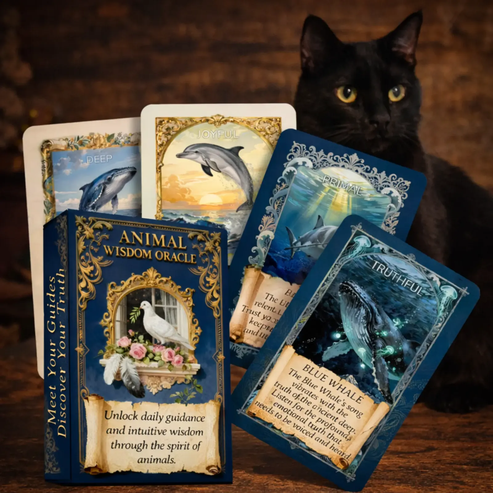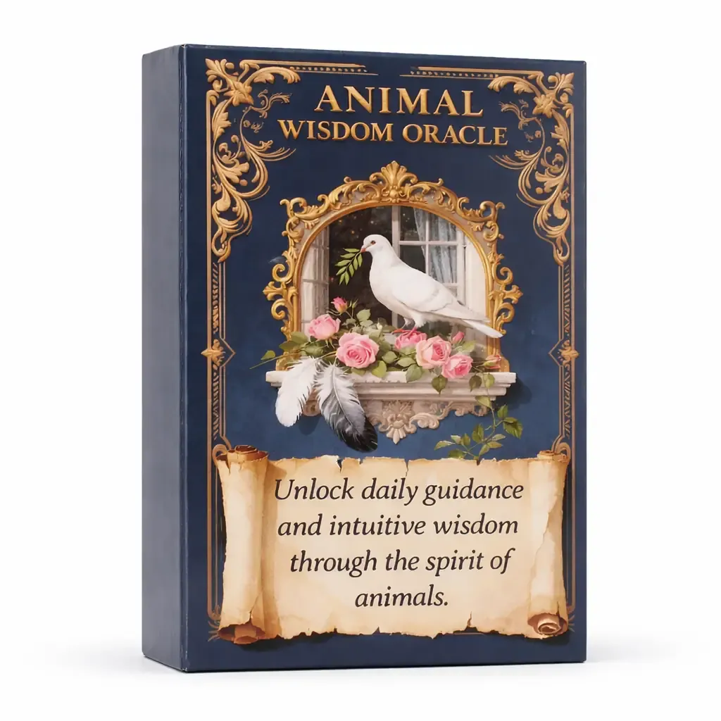 Orakelj živalske modrosti vsebuje 55 kart – 55 živalskih vodnikov, ki te nežno vodijo, podpirajo in usmerjajo na tvoji poti. Vsaka karta je kot srečanje z dušo živali, ki te v pravem trenutku pokliče, da ti preda modrost, ki jo potrebuješ.