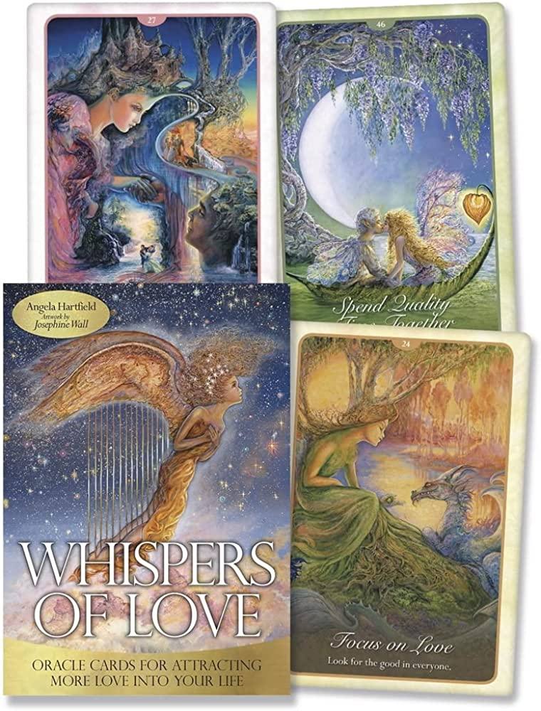 ŠEPET LJUBEZNI - Whispers of Love Oracle je komplet orakeljskih kart, ki vam lahko pomaga pri raziskovanju področja ljubezni in odnosov. Ta izjemna orodja vsebujejo 44 ilustriranih kart, ki ponujajo dragocene vpoglede, spodbude in nasvete glede vašega ljubezenskega življenja.