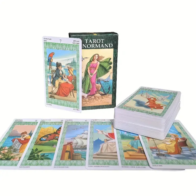 Tarot Lenormand je prefinjen komplet tarot kart, ki združuje klasično simboliko tarota in romantično estetiko 19. stoletja. Podobe na kartah so mehke, jasne in polne pomena, zato nagovarjajo tako začetnike kot izkušene bralce tarota. Že skozi čudovite slike je moč razbrati bogastvo simbolike in intuitivnih sporočil.