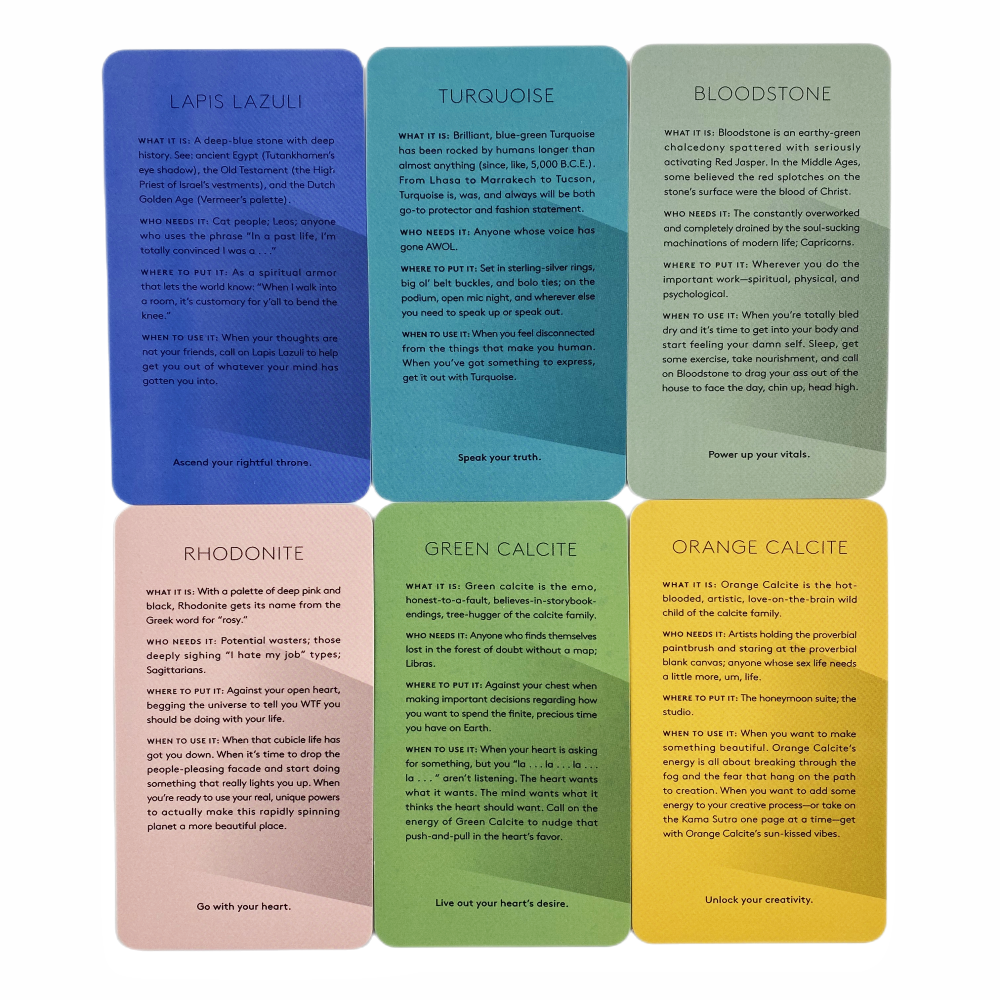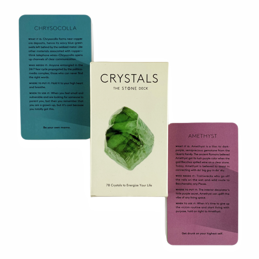 Vsaka karta v tem kompletu povezuje določen kristal z ustreznim simbolom in sporočilom tarota. Kartni komplet je zasnovan za: