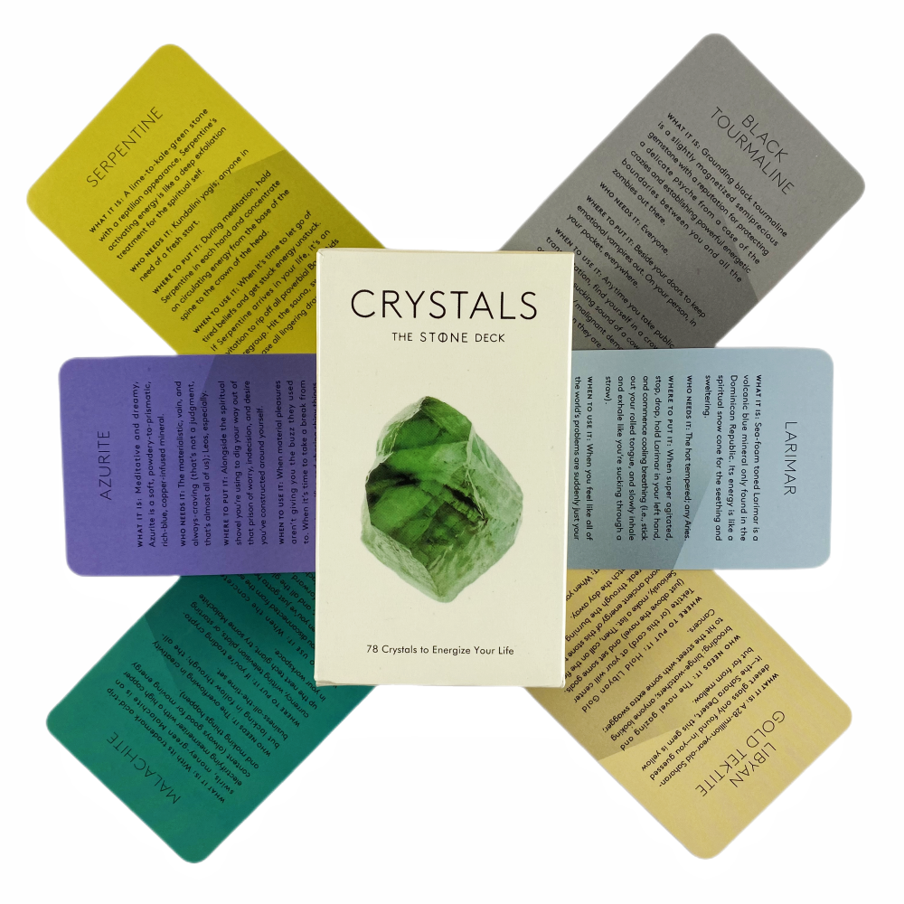 "Crystals: The Stone Tarot" je edinstven orakeljski kartni komplet, ki združuje svet kristalov in tarota. Ustvarila ga je avtorica Andrew Smart, v sodelovanju z umetnikom Elaine Resnick. Ta komplet vsebuje 78 ilustriranih kart, vsaka s svojim edinstvenim sporočilom, simboliko in umetniškim prikazom. "Crystals: The Stone Tarot" združuje energijo kristalov z modrostjo tarota za ponujanje duhovnega vodstva, razumevanja in vpogledov.