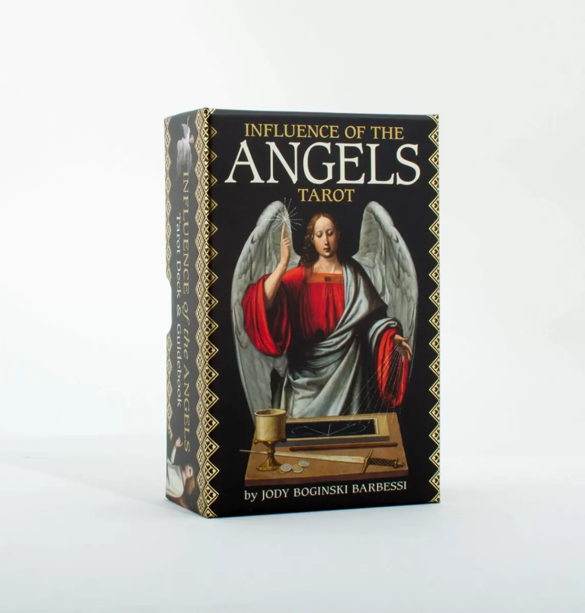Vodstvo angelov Tarot (izvirno "Influence of the Angels Tarot") je osupljiv komplet tarot kart, ki združuje klasično simboliko tarota z nežno in ljubečo prisotnostjo angelov. Avtorica Jody Boginski Barbessi je zasnovala te karte z namenom, da uporabniku ponudi globoko duhovno podporo, jasnost in navdih, medtem ko raziskuje življenjska vprašanja in izzive. Karte so bogato ilustrirane in prežete z božansko energijo, ki spodbuja notranjo povezanost in duhovno rast.