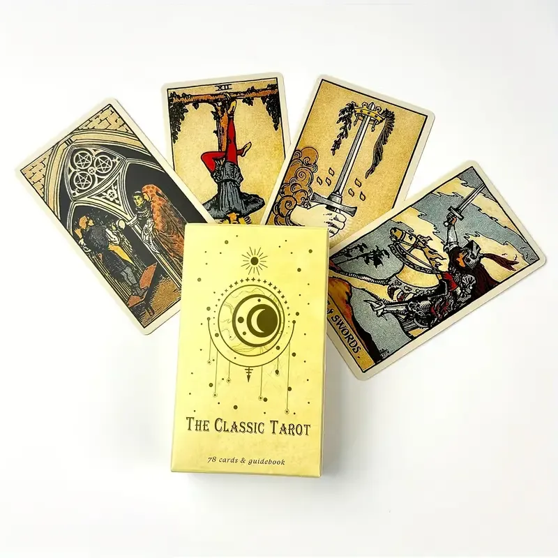 Tarot ni le orodje prerokovanja, temveč ključ do globljega razumevanja sebe in sveta okoli nas. Klasični Tarot je popoln komplet za vse, ki se želijo podati na mistično pot intuicije, ne glede na to, ali so začetniki ali že izkušeni bralci kart.