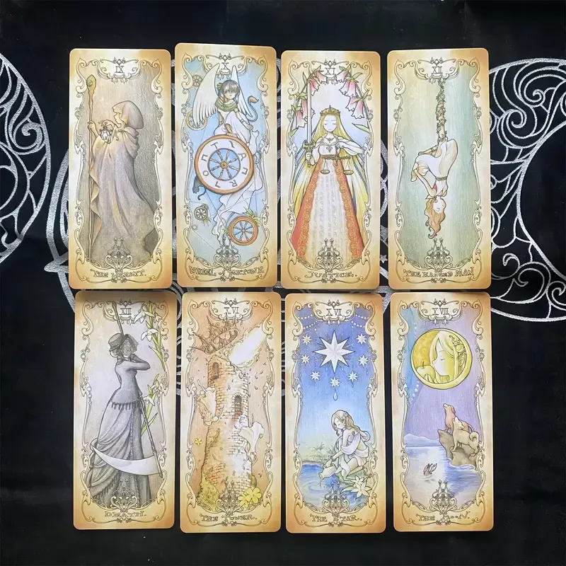 Te karte niso zasnovane le za napovedovanje prihodnosti, temveč za raziskovanje notranjih globin, kjer prebivajo naši skriti potenciali, strahovi in upanja. Vsaka karta je kot svetlobni žarek, ki osvetli delčke nas samih, ki jih morda še ne poznamo, a čakajo, da jih odkrijemo in zaživimo. Ko z njimi delamo, se vzpostavi dialog med nami in energijo vesolja, ki nas vodi, tolaži in odpira nove poti.