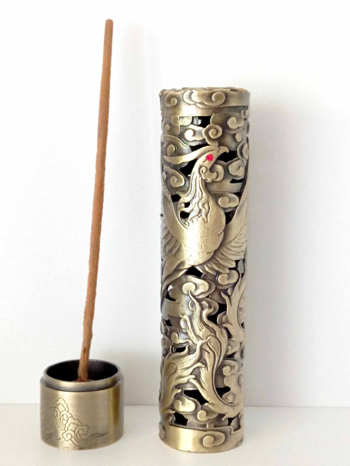 Pred vami je nosilec za kadilo, a ne navaden – to je simbol preobrazbe, preporoda in tihe moči. V njegovi srčiki prebiva feniks, mitska ptica, ki se znova in znova rojeva iz pepela – kot tudi mi, vsakič znova, ko se odločimo stopiti vase.