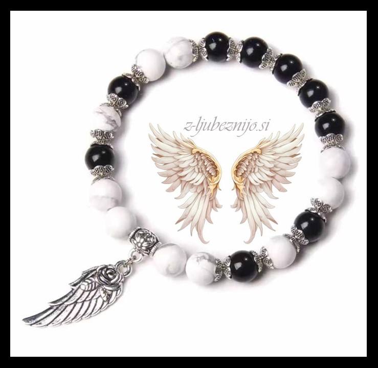 Angelska zapestnica Zaščite – Obsidian & Howlit