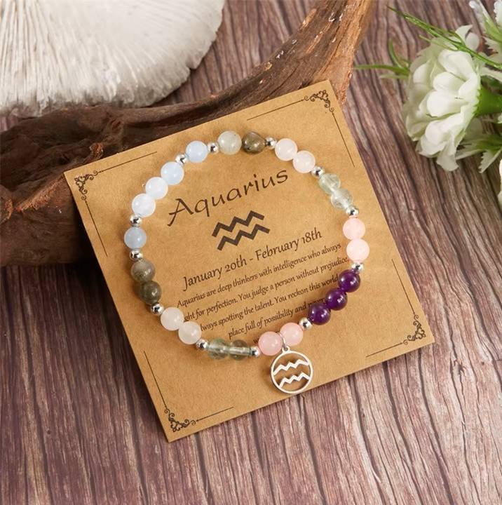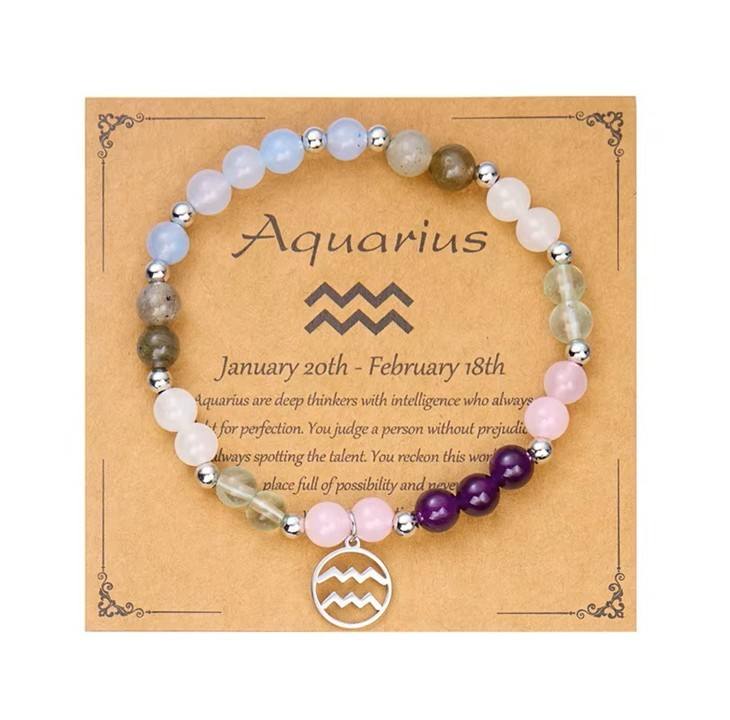 Naravni kristali na zapestnici Vodnarju prinašajo prizemljitev in notranjo toplino. Kristali, ki so nastajali skozi milijone let, nosijo energijo zemlje in narave, ki Vodnarja spominja, da je svoboda močnejša, ko stoji na trdnih temeljih. Pomagajo mu, da ostane povezan s srcem in izraža svoje ideje na način, ki navdihuje druge. Simbol Vodnarja na zapestnici okrepi njegovo inovativnost in svobodomiselnost, kristali pa ga spodbujajo k harmoniji in notranjemu miru. Tako postane zapestnica njegov talisman za uravnoteženje med svobodo in stabilnostjo.