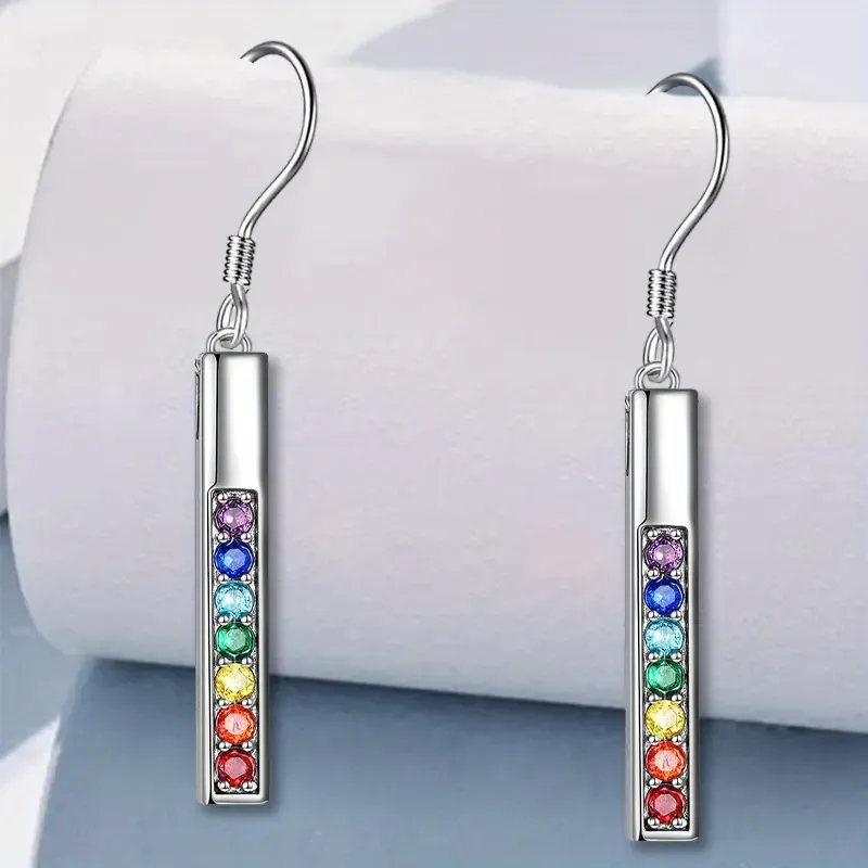 Čakra energijski uhani – moč barv so izraz harmonije, ravnovesja in prefinjene elegance. Sedem barvnih kristalov, vdelanih v podolgovato kovinsko obliko, simbolizira sedem čaker – energijskih centrov telesa, skozi katere teče življenjska sila. Vsak kristal vibrira v svoji frekvenci in se ujema z določeno čakro, kar spodbuja pretočnost energije in notranje ravnovesje.