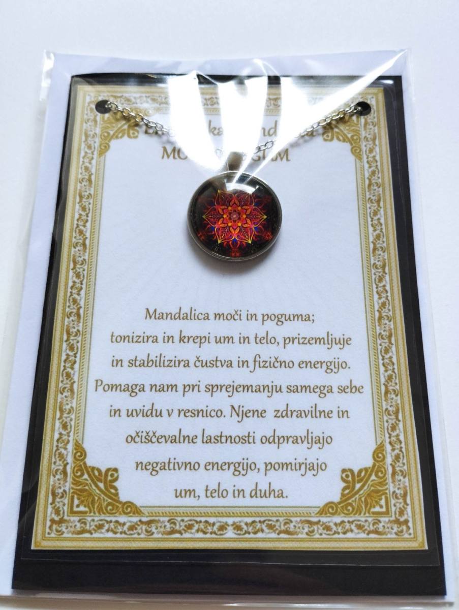 Ogrlica z energijsko mandalo je v darilni embalaži. Ta je v obliki vizitke, z opisom v cerificiranem plastificiranem okvirju, kar pomeni, da je lahko tudi čudovito darilo nekomu, ki nam je blizu.