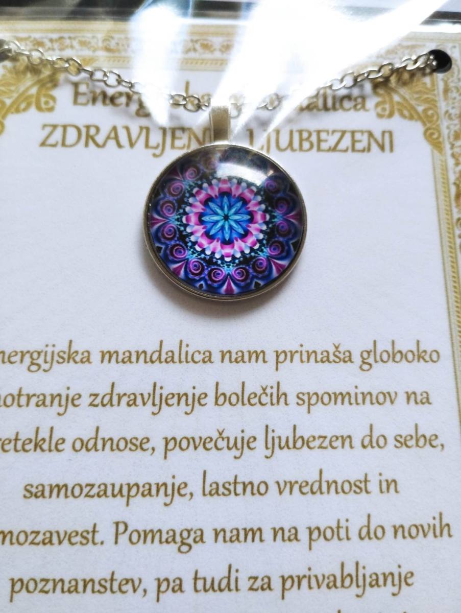 Ogrlica z energijsko mandalo je v darilni embalaži. Ta je v obliki vizitke, z opisom v cerificiranem plastificiranem okvirju, kar pomeni, da je lahko tudi čudovito darilo nekomu, ki nam je blizu.