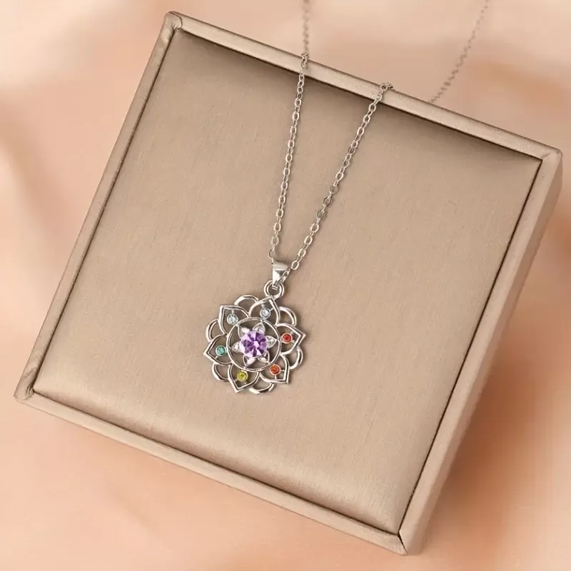 Ogrlica z barvnimi kristali iz jekla je lahko izjemno učinkovito orodje za uravnoteženje čaker. Vsak kamen predstavlja določeno čakro: rdeča barva za korensko čakro, oranžna za sakralno, rumena za sončno pleksusno, zelena za srčno, modra za grleno, vijolična za čelno in bela za kronsko čakro.