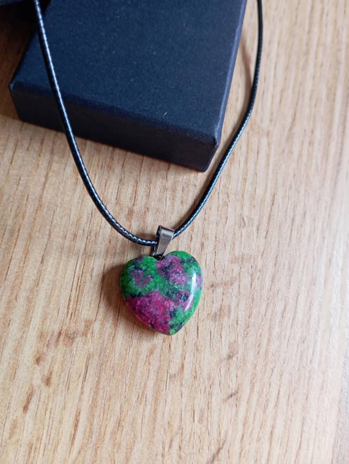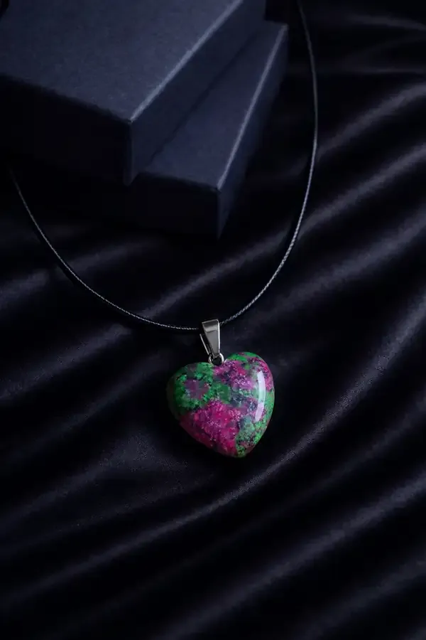 Obesek srce iz naravnega kamna Zoist z Rubinom