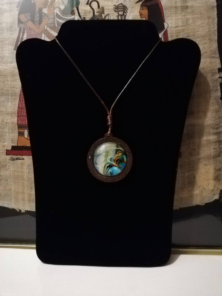 Osnova ogrlice je unikaten medaljon iz lesa.