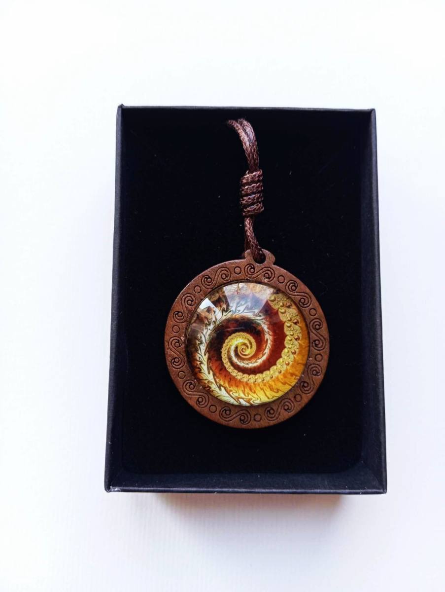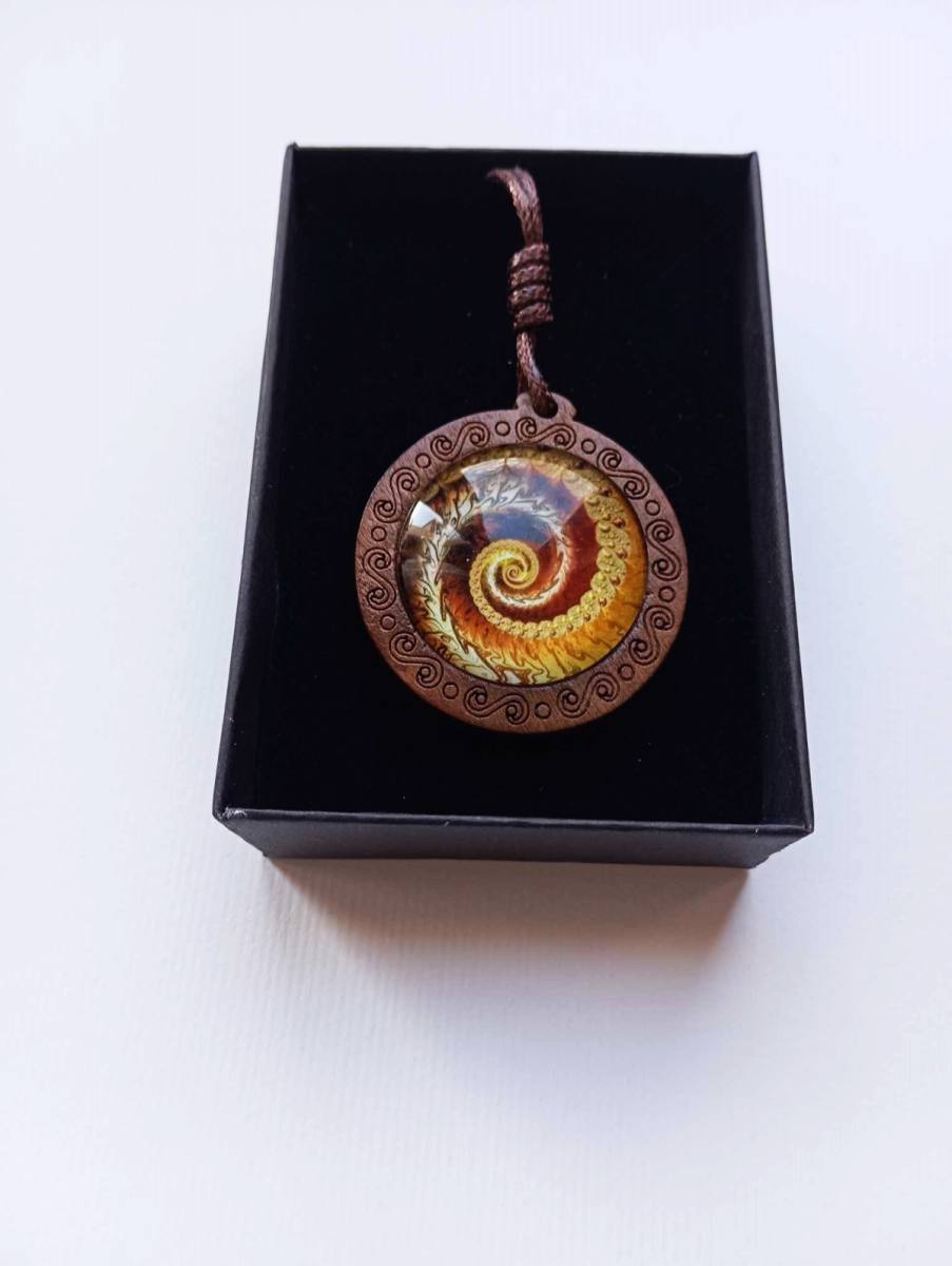 UNIKATNA Ogrlica z medaljonom iz lesa in energijskim barvnim diagramom