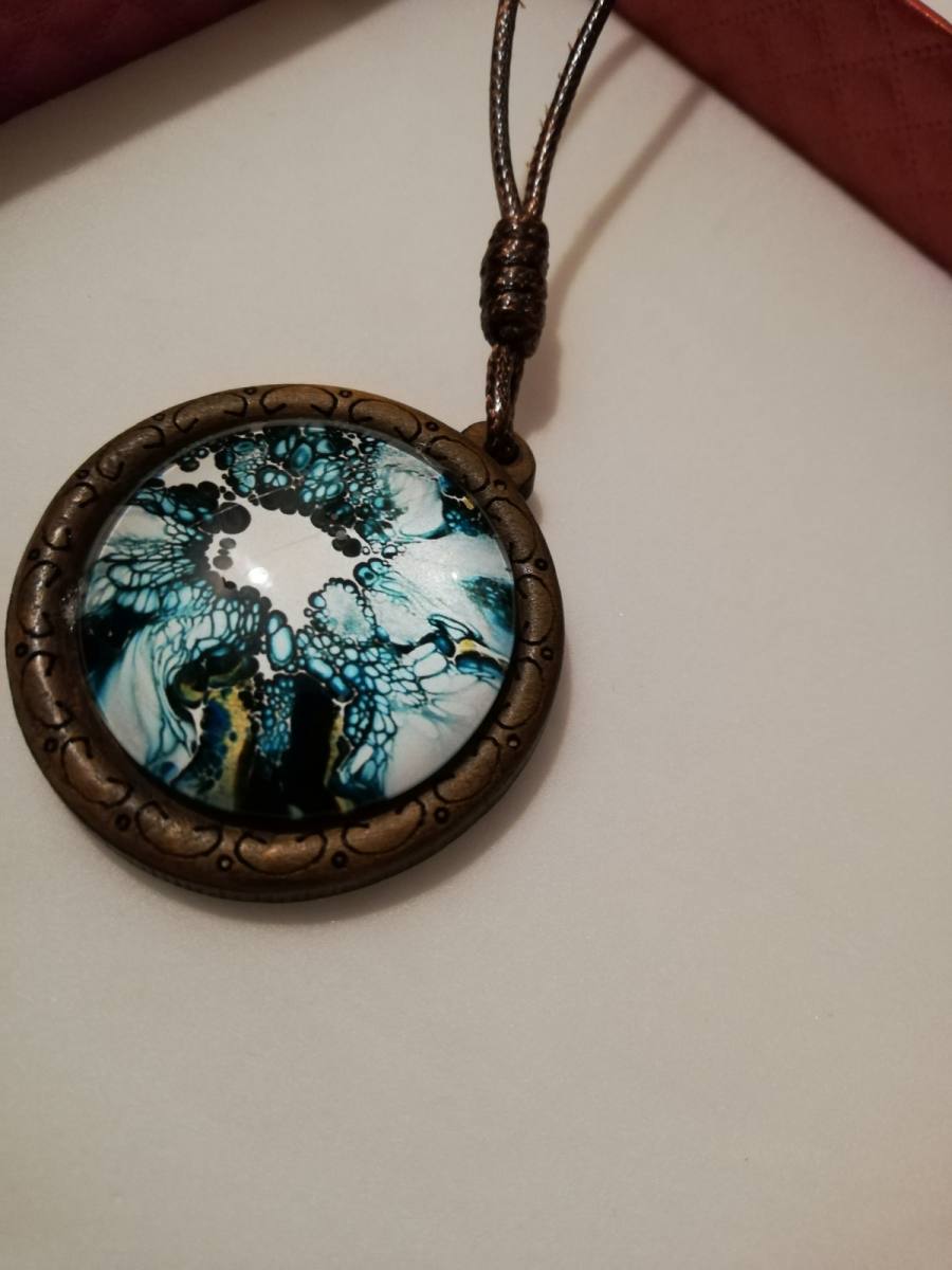 UNIKATNA Ogrlica z medaljonom iz lesa in energijskim barvnim diagramom