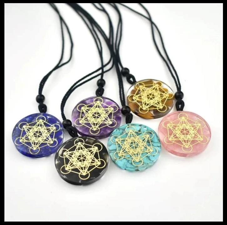 ORGONITNA OGRLICA Z ENERGIJSKIMI KRISTALI IN ZLATIM DIAGRAMOM V KRISTALNI MASI