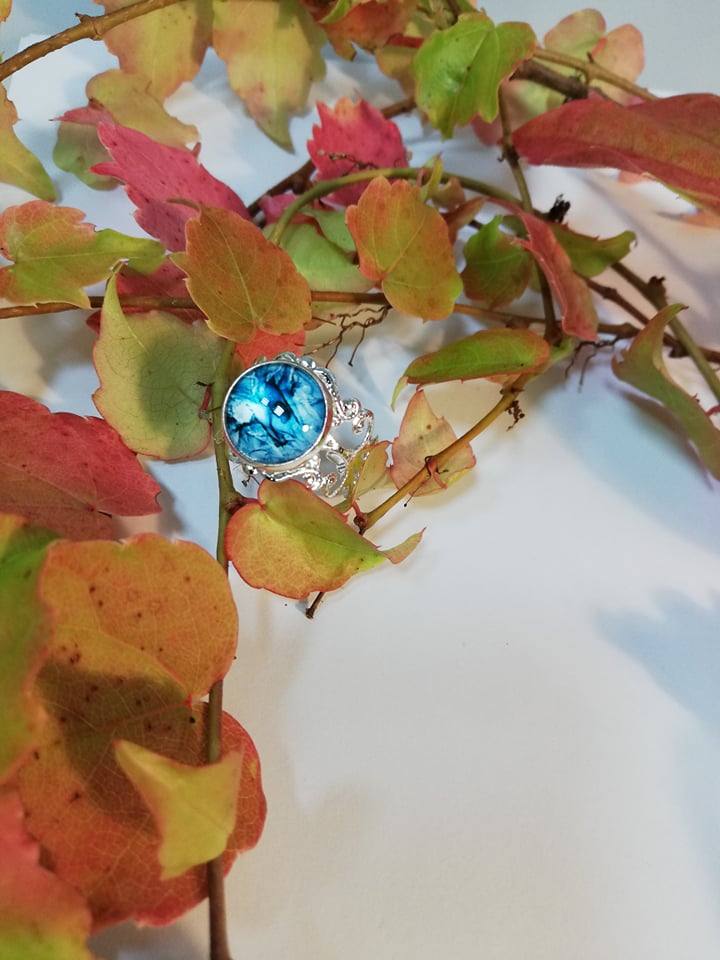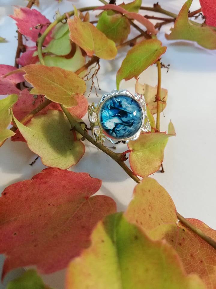 Unikaten nastavljiv prstan z stekleno solzico.