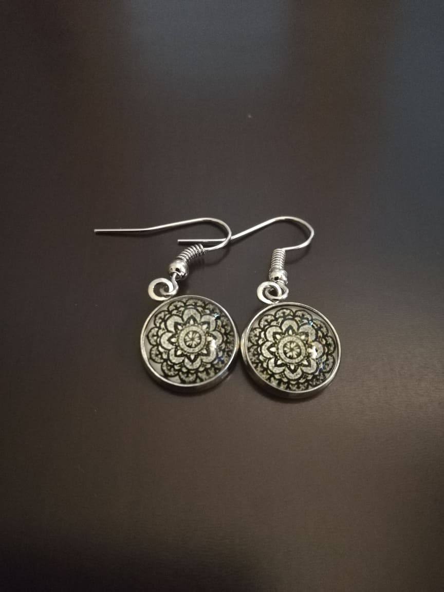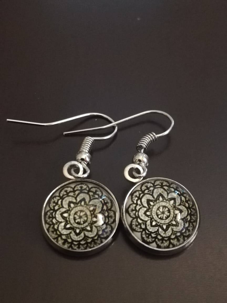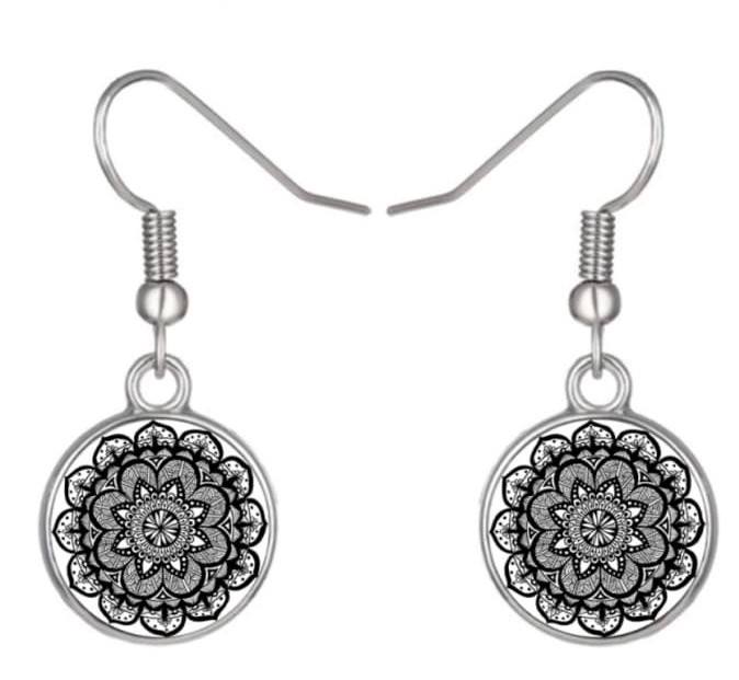V jekleno osnovo uhančka je vstavljena "solza" pod katero je mandala.