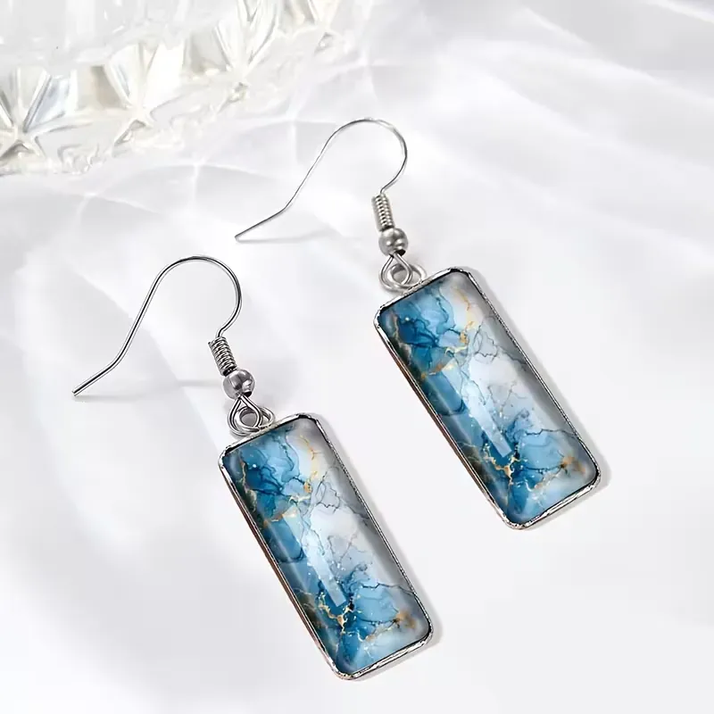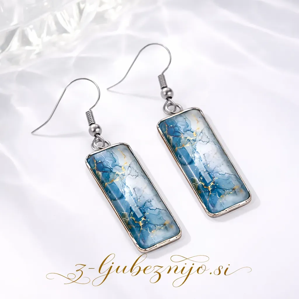 Nežni uhani iz jeklene osnove in kristalno čistega stekla, ki ustvarja občutek globine in ujame svetlobo ob vsakem gibu. Subtilen, a opazen kos, ki doda eleganco vsakemu dnevu.