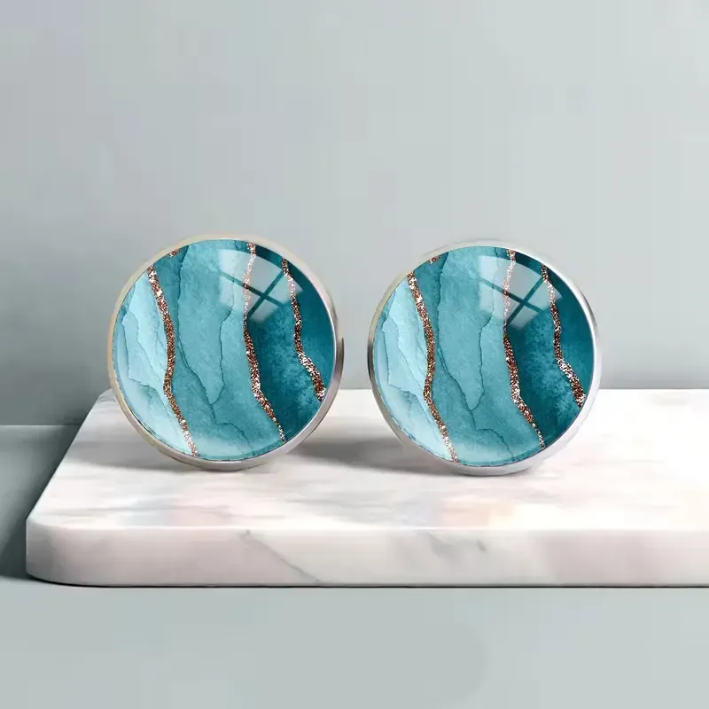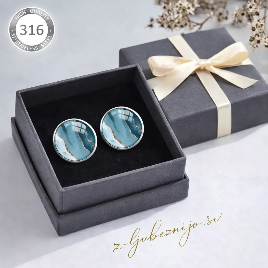 Nežni uhani iz jeklene osnove in kristalno čistega stekla, ki ustvarja občutek globine in ujame svetlobo ob vsakem gibu. Subtilen, a opazen kos, ki doda eleganco vsakemu dnevu.