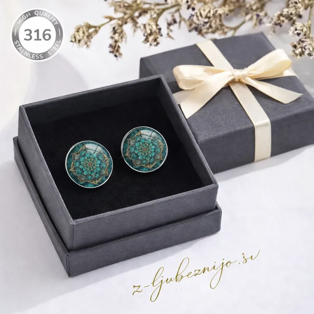Nežni uhani iz jekla in stekla, ki ujamejo svetlobo in ustvarijo občutek globine. Popoln vsakodnevni kos z elegantnim pridihom.