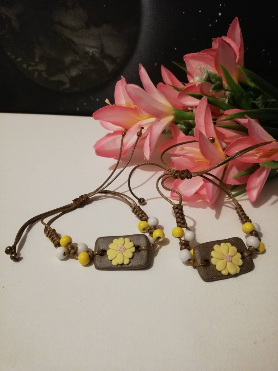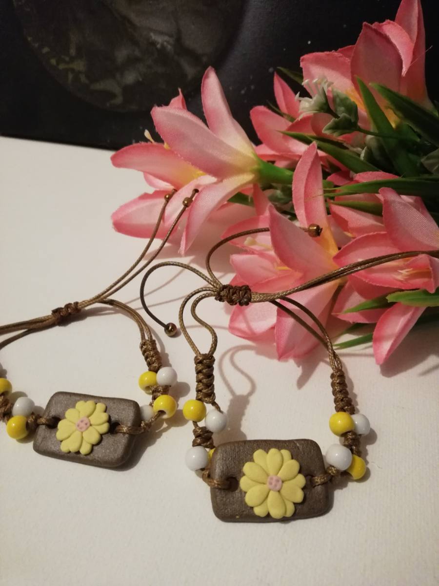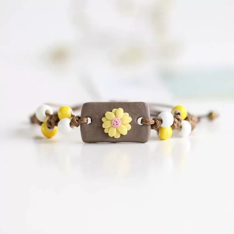 Unikatna zapestnica z dodatki iz fimo mase in keramike.