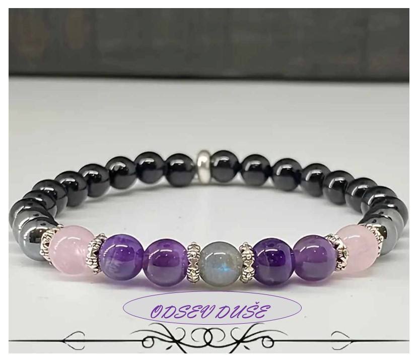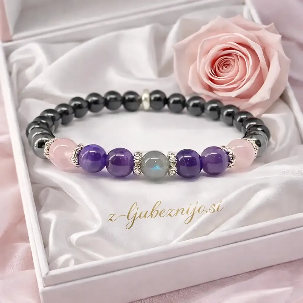 Ametist nosi energijo notranjega miru in nežne tolažbe. Pomaga umiriti misli, ko se te vrtijo brez odgovora, ter odpira prostor za sprejemanje in zaupanje. Je kamen, ki objame takrat, ko besede ne zadostujejo, in prinaša občutek, da je v kaosu še vedno mogoče najti tišino.
