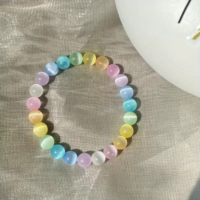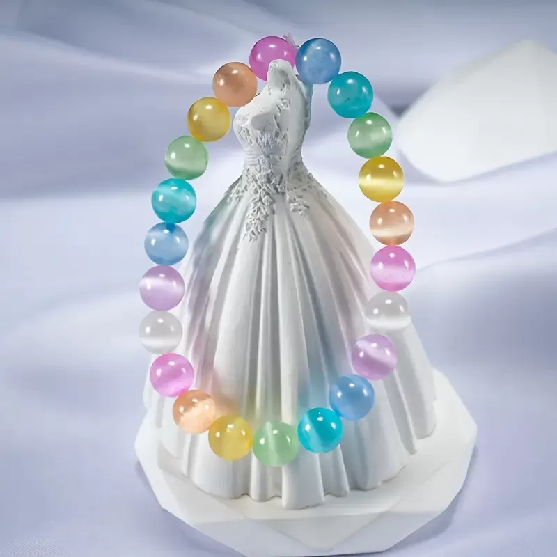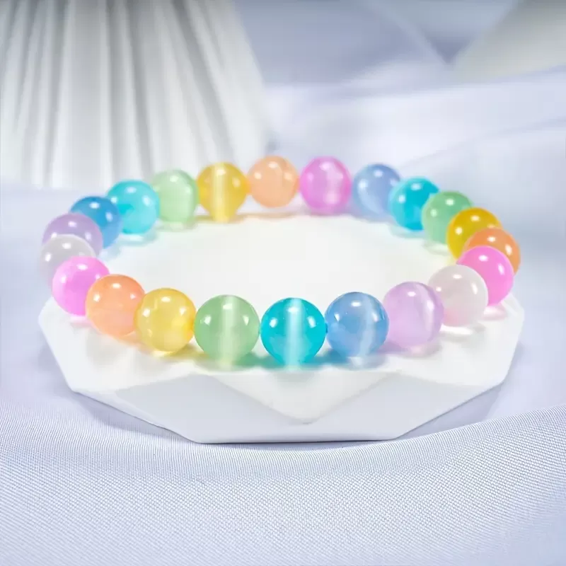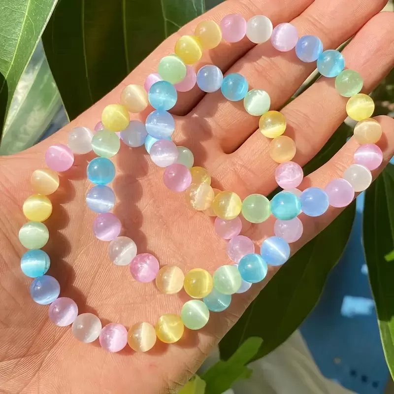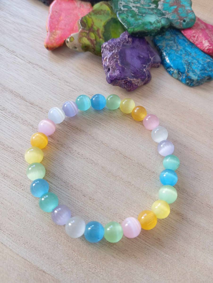 V vsaki mavrici se skriva čarobnost. Je simbol upanja, preobrazbe in lepote, ki pride po nevihti. Tako kot mavrica povezuje nebo in zemljo, tudi ta zapestnica združuje svetlobo, energijo in skrite odseve mačjega očesa. Njeni nežni, pastelni odtenki ustvarjajo igro svetlobe, ki se spreminja z vsakim gibom in kotom pogleda – prav tako, kot se spreminjamo mi skozi izkušnje življenja.