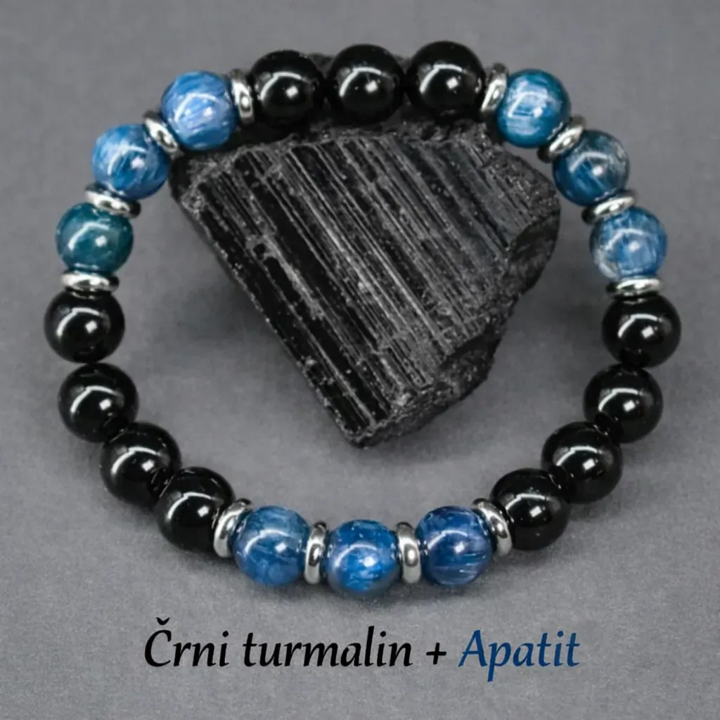 Zapestnica iz črnega turmalina in apatita – Vztrajaj, uspelo ti bo