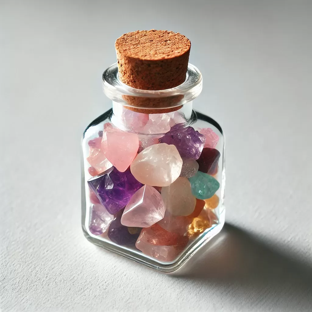 Za še globljo povezavo in podporo pa je del tega čarobnega kompleta tudi steklenička mešanih naravnih kristalčkov, ki jo prejmete skupaj z zapestnico. V njej so skrbno izbrani kristali za ljubezen, zaščito in notranji mir – vsak kamen nosi svojo edinstveno energijo, ki dopolnjuje moč zapestnice. Te kristalčke lahko nosite s seboj kot osebni talisman, jih postavite na posebno mesto v svojem domu ali uporabite pri meditaciji, da okrepite svoje duhovno potovanje.
