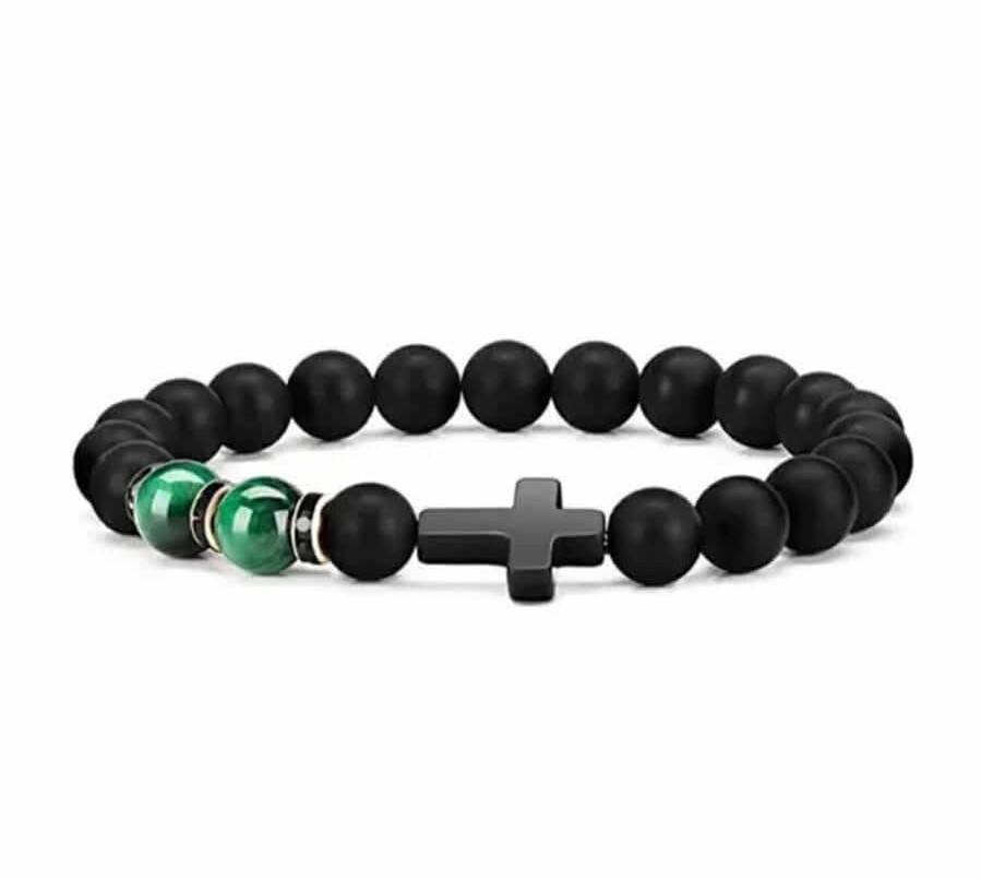 Moč in vera – zapestnica oniks & tigrovo oko s križem tako ni le eleganten kos nakita, temveč vsakodnevni opomnik, da smo zaščiteni, da zmoremo vztrajati in da je v srcu vedno prostor za upanje.