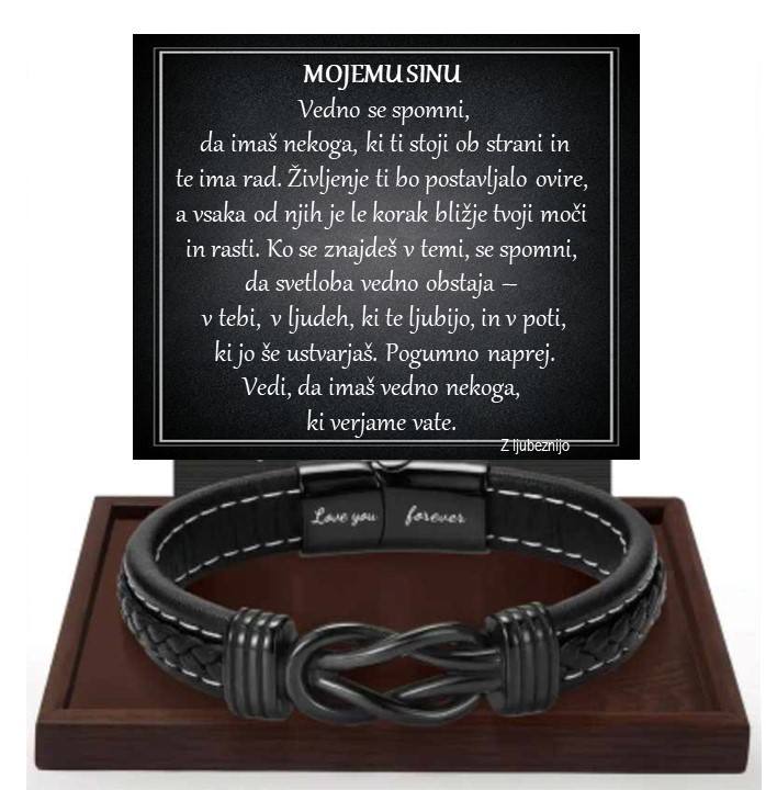 V življenju obstajajo trenutki, ko besede niso dovolj, ko želimo nekomu pokazati, kako pomemben je za nas in mu pustiti trajen opomnik naše ljubezni in podpore. Ta zapestnica je več kot le nakit – je simbol neskončne povezanosti, spoštovanja in nevidne vezi, ki ostane, ne glede na razdaljo ali čas. Namenjena je tistim, ki nosijo posebno mesto v našem srcu – sinu, partnerju, očetu, bratu ali prijatelju.