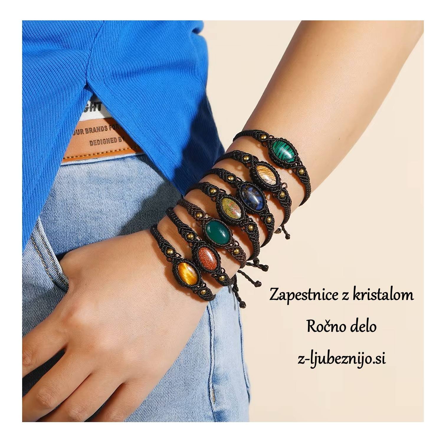 Makrame zapestnica iz kristala ZEBRA JASPIS