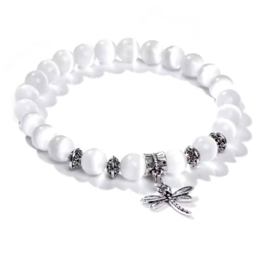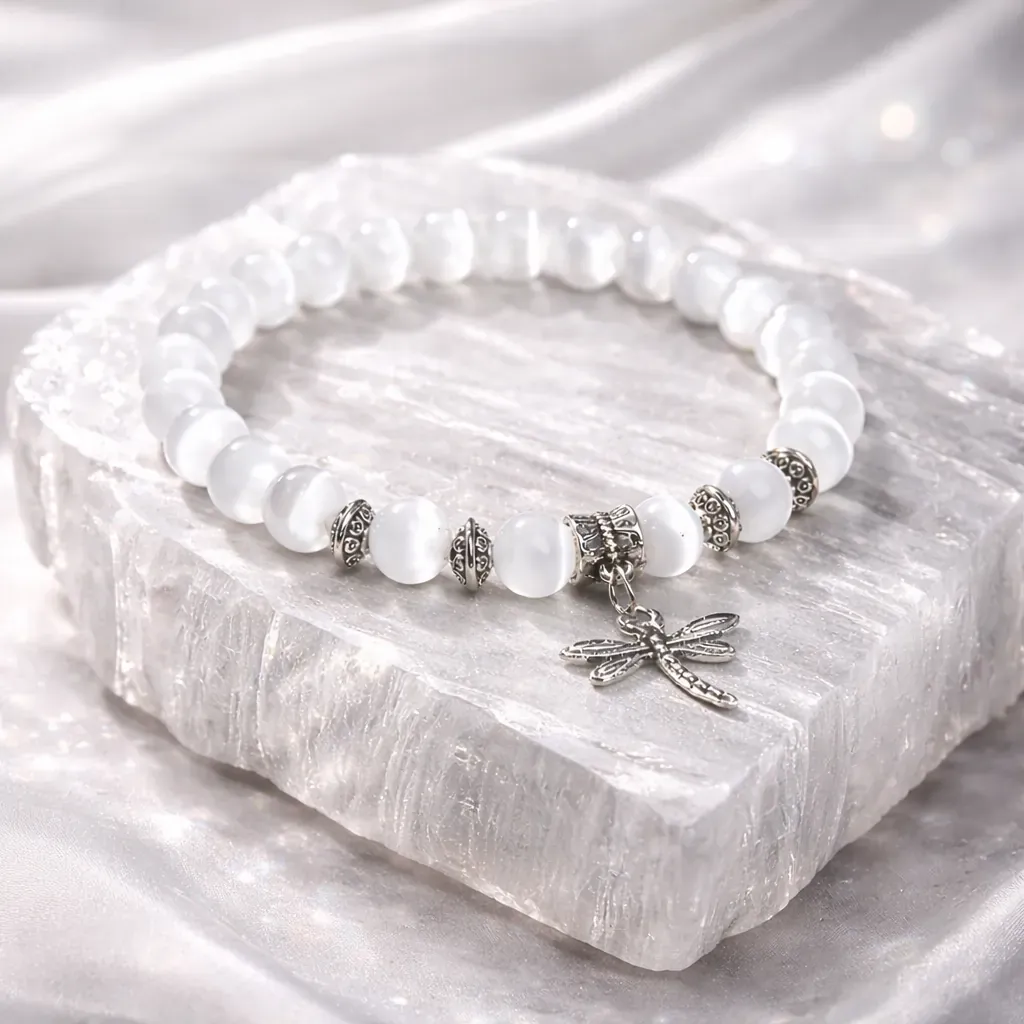 Selenit, znan kot angelski kristal, v to zapestnico prinaša svetlobo in zaščito. Njegova čista, visoka vibracija čisti energijo, umirja misli in ustvarja prostor, kjer se lahko ponovno povežemo s svojo notranjo modrostjo. Že od nekdaj je veljal za kamen miru, duhovnega vodstva in nežne, a močne podpore.