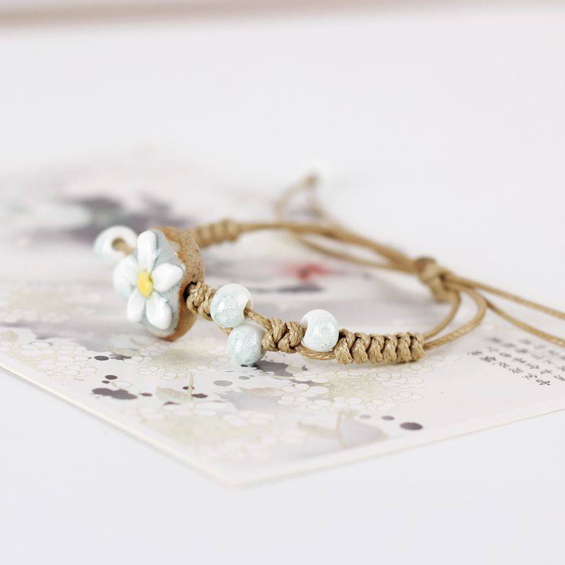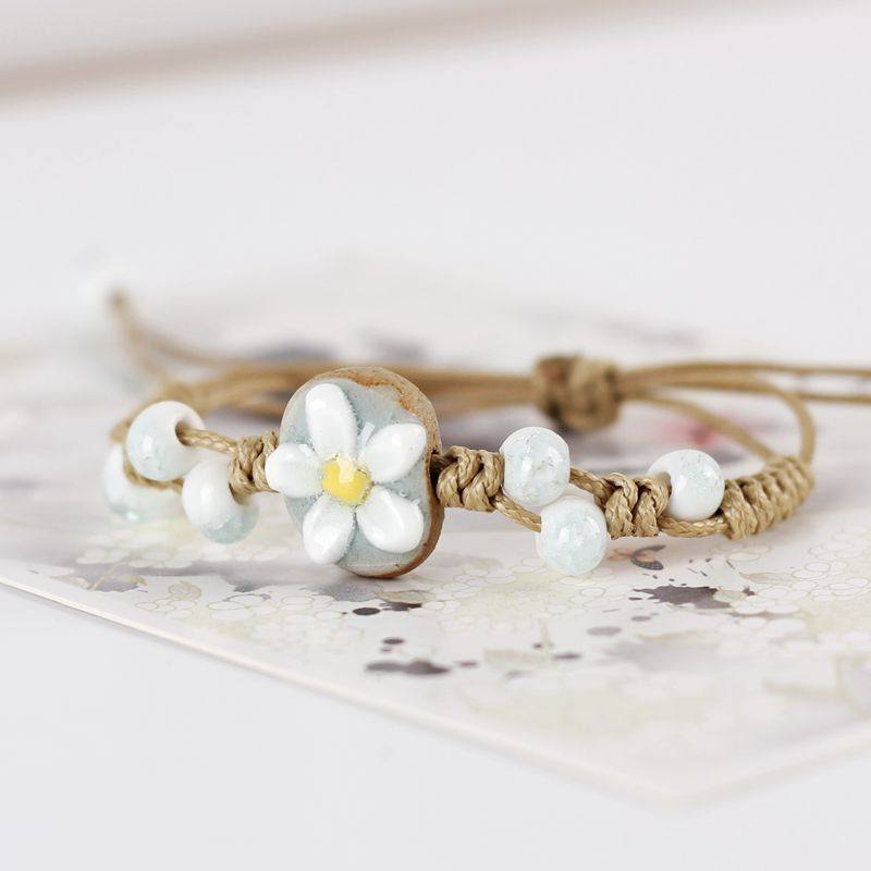 Osnova zapestnice je vrvica iz močne jute, ki je prilagodljiva za vse velikosti zapestij.