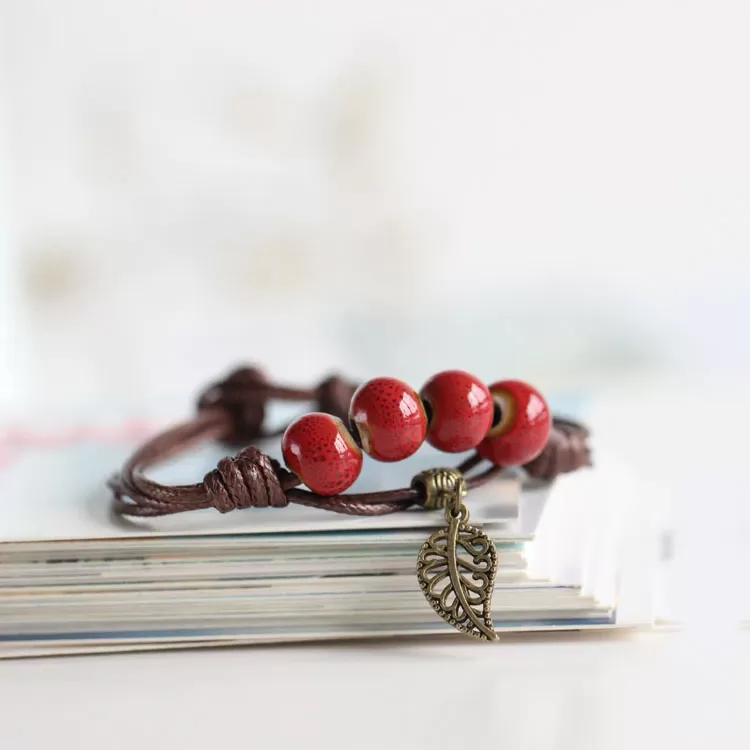 Osnova zapestnice je vrvica iz usnja, in je prilagodljiva za vse velikosti zapestij.