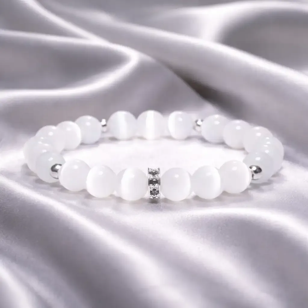 Ta zapestnica je močan talisman, ki pomaga uravnotežiti energijo na vseh ravneh – fizični, čustveni, mentalni in duhovni. Selenitova svetlobna vibracija prečiščuje negativnosti, izboljšuje intuicijo in vas usmerja k notranjemu miru. Pomaga vam ostati osredotočeni, dvigniti svojo zavest in zaupati svoji življenjski poti.