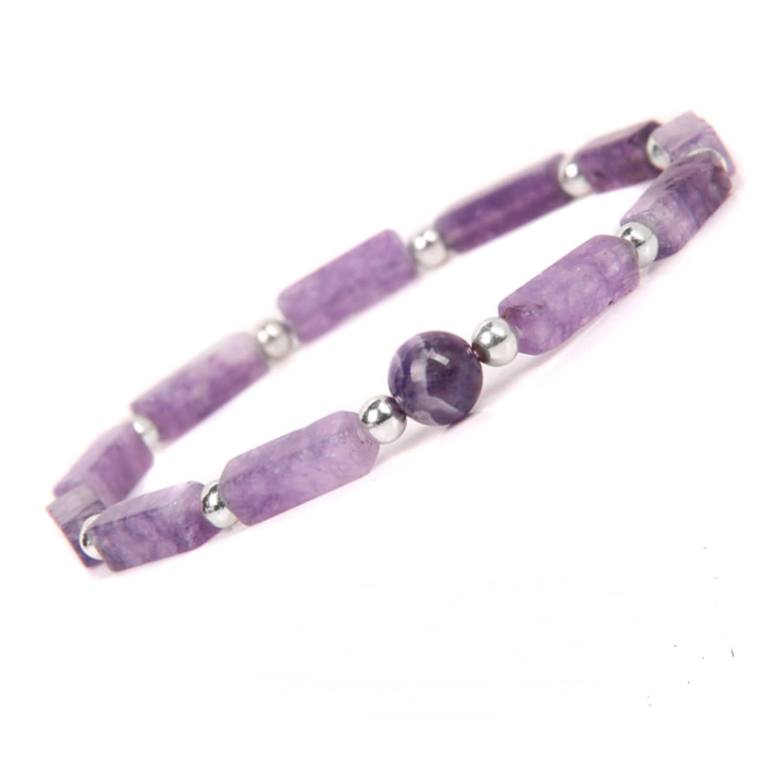 Nošenje te zapestnice pomaga sprostiti napetost, zmanjšuje stres in odpravlja notranji nemir, ki pogosto nastaja v hitrem tempu vsakdana. Ametist te vodi stran od preobremenjenih misli in te poveže z notranjim centrom – prostorom, kjer se počutiš varno, mirno in celovito.