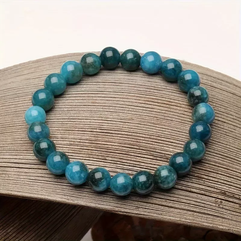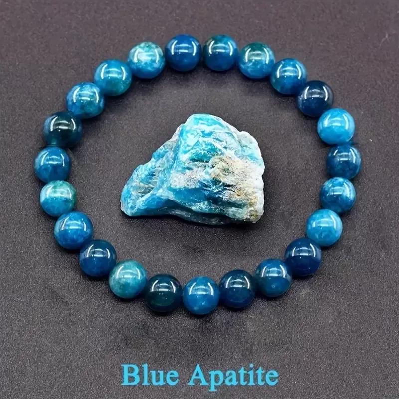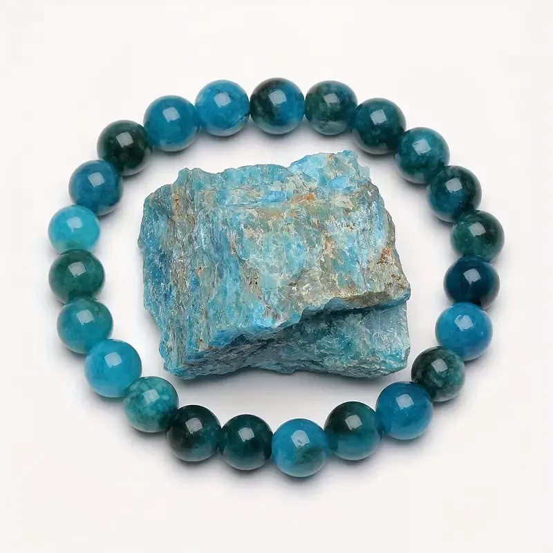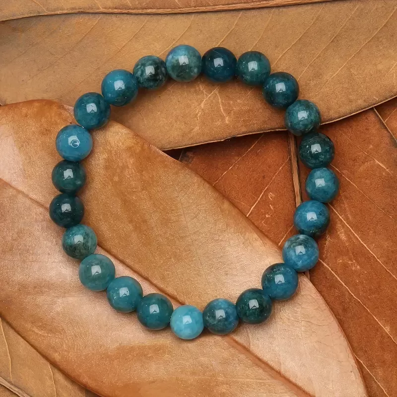 Apatit je znan kot kristal, ki spodbuja avtentičnost, krepi govor in pomaga pri premagovanju strahu pred izražanjem resničnih misli in občutkov. Njegova energija odpira grleno čakro, center izražanja in komunikacije, ter tako pomaga razbistriti um in uskladiti misli, da jih lahko jasno in samozavestno izrazimo. S to zapestnico boste vedno nosili opomnik, da vaša resnica zasluži, da jo slišijo, in da je vaše izražanje dragoceno in pomembno.