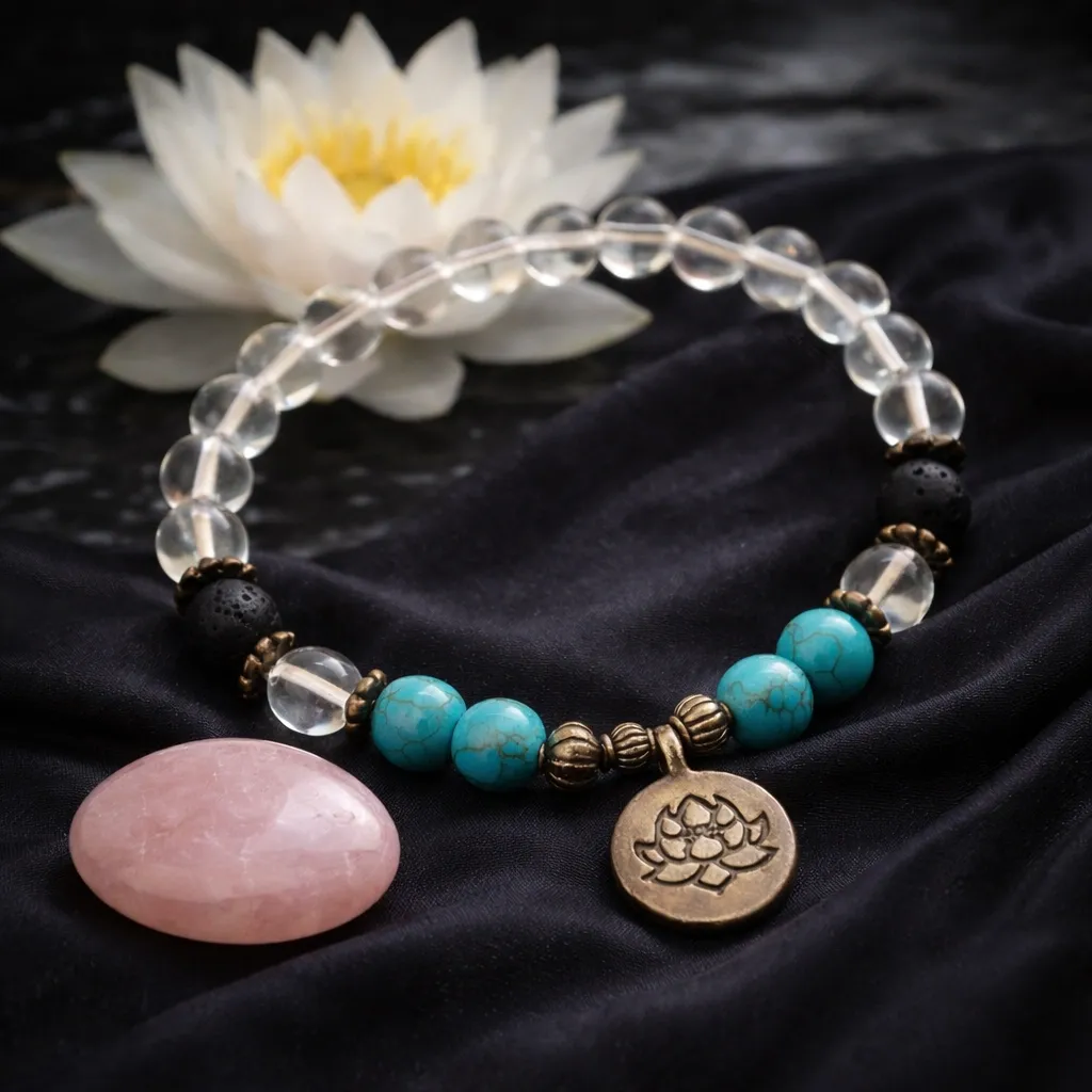 Ta zapestnica nosi zgodbo rasti, preobrazbe in notranje moči. Navdihnjena je z lokvanjem – cvetom, ki se rodi v globinah, med temo in blatom, a kljub vsemu vedno najde pot proti svetlobi. Tako kot lokvanj tudi mi skozi izzive življenja rastemo, se krepimo in razcvetimo v svojo pravo lepoto.