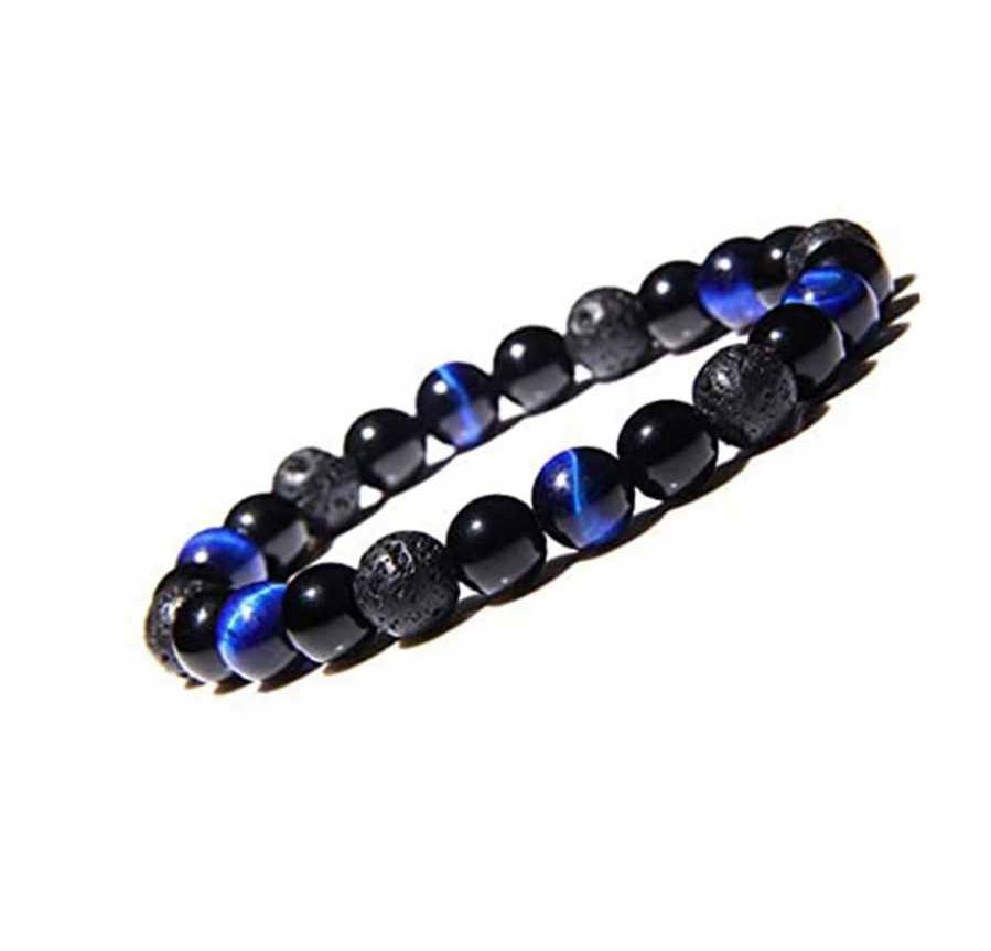 Zapestnica iz vulkanske lave, oniksa in barvnega tigrovega očesa – zaščita, moč in ravnovesje