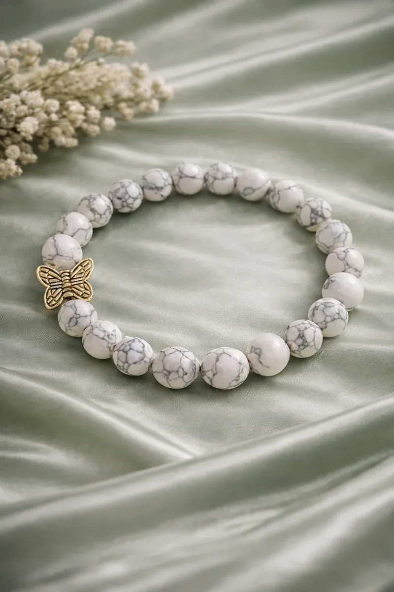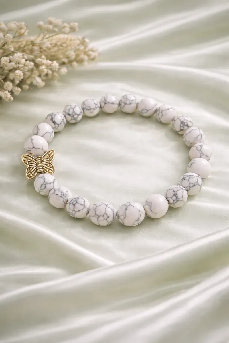 Metulj, ki ga najdete med kamni te zapestnice, je močan simbol spremembe, novega začetka in vere v boljši jutri. Tako kot metulj preživi svojo preobrazbo iz gosenice, tudi vi z vsako preizkušnjo in spremembo prehajate v novo, močnejšo različico sebe. "Krila Upanja" vam prinašajo energijo, ki vas opominja, da nikoli ne izgubite vere v življenje, saj vsaka izkušnja – dobra ali težka – prinaša možnost za rast, ozdravljenje in preporod.