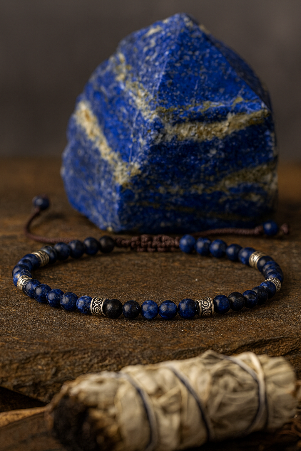 Ko zapestnico nežno snameš ali jo pustiš ob postelji, postane tvoj tihi čuvaj. Lapis Lazuli ne sili – posluša, varuje in tiho prinaša mir.